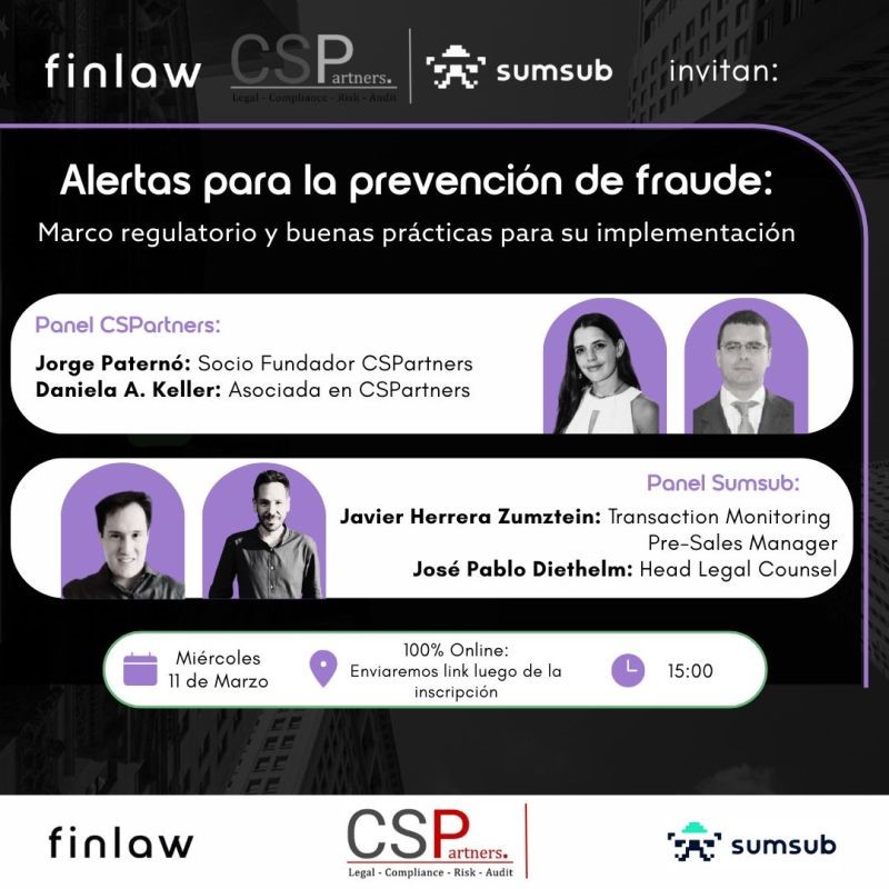 CSPartners participó, junto a FINLAW y Sumsub, en un encuentro orientado a analizar el rol de los sistemas de alertas en la prevención de fraude y el cumplimiento regulatorio.