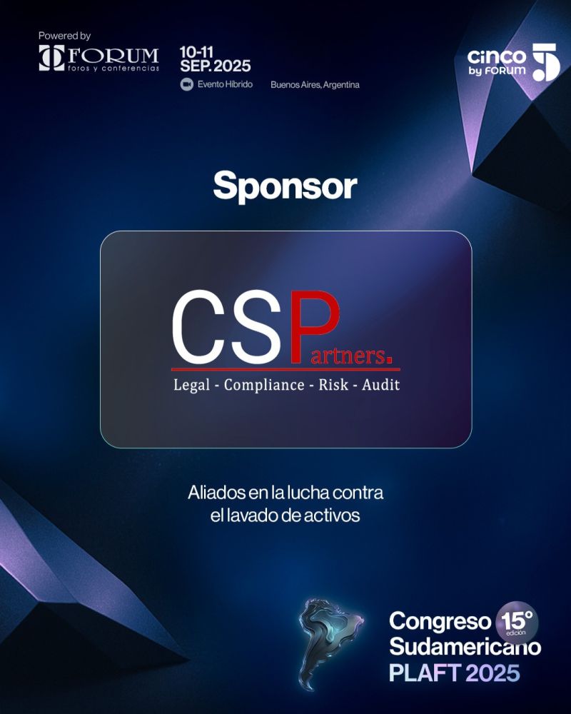 20 de septiembre de 2025 CSPartners Publicaciones No hay comentarios CSPartners Argentina fue sponsor del Congreso Sudamericano de PLAFT de septiembre de 2025 organizado por Forum.