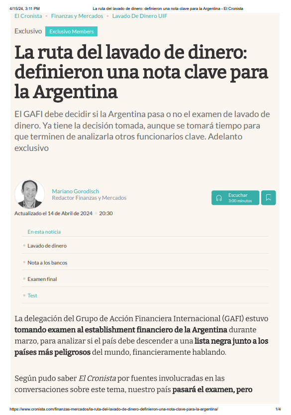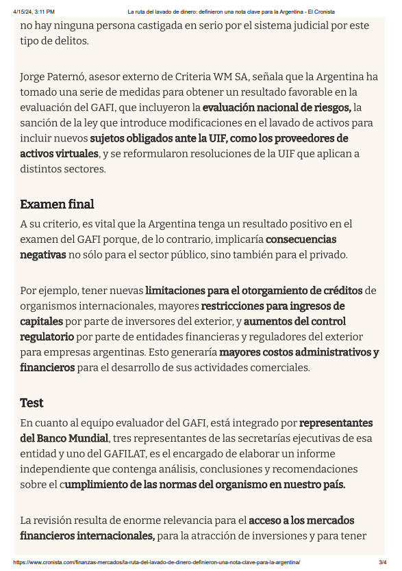 Home News Nota a Jorge Paternó en el Cronista sobre la evaluación mutua de GAFI en curso a la República Argentina.