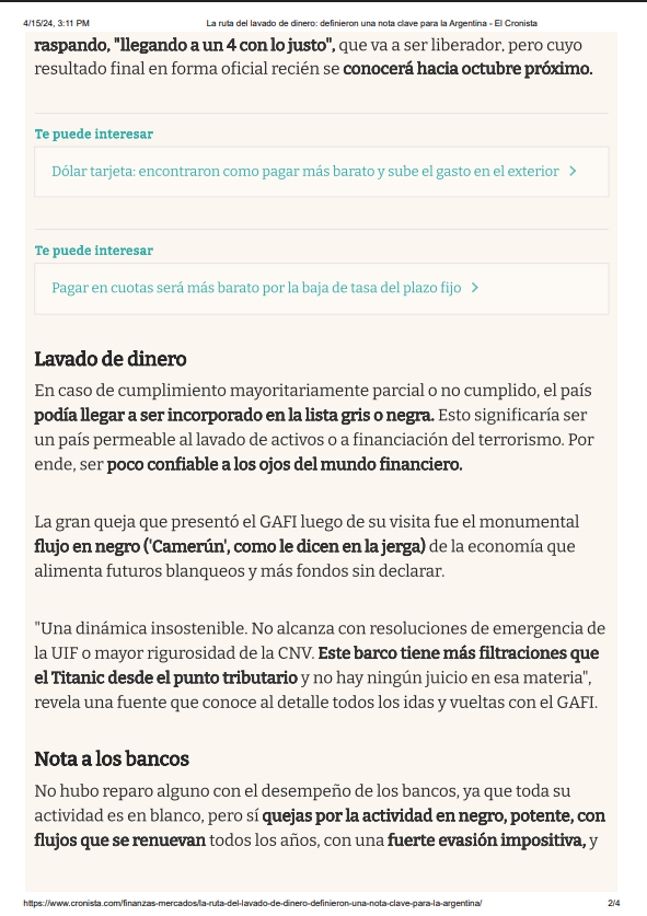 Nota a Jorge Paternó en el Cronista sobre la evaluación mutua de GAFI en curso a la República Argentina.